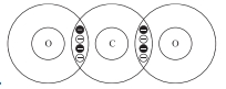 Câu 24 [244147]: Trong các sơ đồ dưới đây các gạch chéo biểu diễn kí hiệu các electron của nguyên tử oxygen, các chấm biểu diễn các electron của carbon. Sơ đồ chấm và gạch chéo nào cho thấy sự sắp xếp các electron ở lớp vỏ ngoài cùng trong phân tử của khí carbon dioxide?