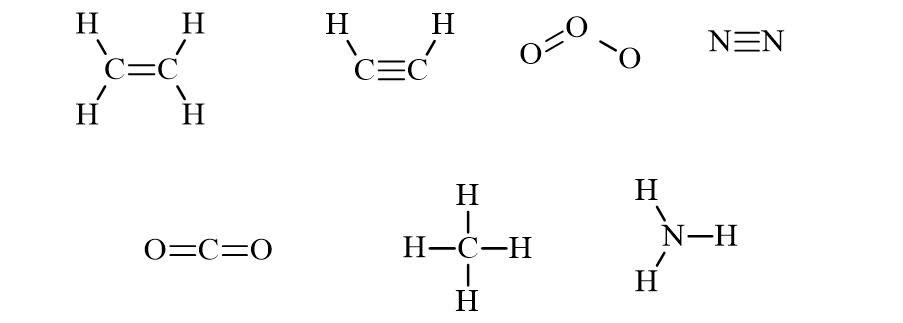 Câu 12 [244167]: Cho các phân tử sau: C2H4, C2H2, O3, N2, CO2, CH4, NH3. Có bao nhiêu phân tử có liên kết đôi và có bao nhiêu phân tử có liên kết ba?