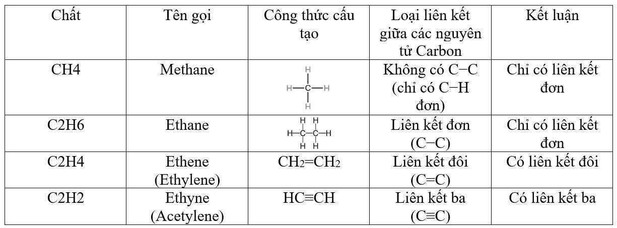 ❌Sai. D. Carbon chỉ có 2 liên kết, không đủ 4 liên kết cần thiết.