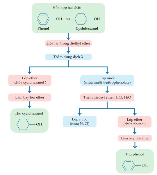 Các bước tiến hành tách hai chất hữu cơ cyclohexanol và phenol ra khỏi hỗn hợp như sau: