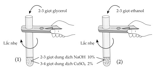 • Bước 2: Thêm 2 – 3 giọt glycerol vào một ống nghiệm; 2 – 3 giọt ethanol vào ống nghiệm còn lại. Quan sát hiện tượng.