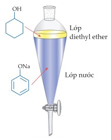 • Bước 1: Hòa tan hỗn hợp vào dung môi diethyl ether, sau đó cho vào phễu chiết.