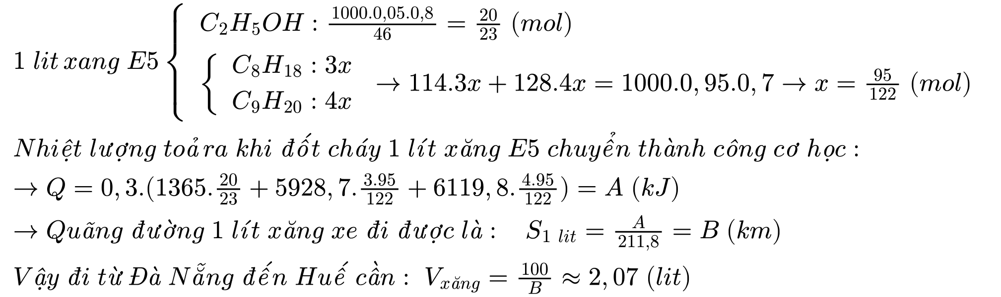 Thể tích xăng E5 là VE5 = 399,2346:5% ≈ 7985 L