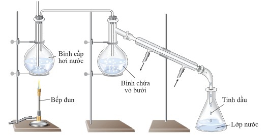 Một nhóm học sinh thực hiện tách tinh dầu bưởi trong phòng thí nghiệm theo các bước sau: