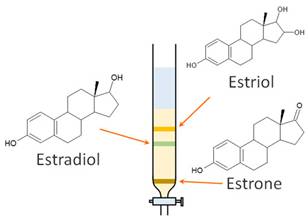 Tiếp đến là estradiol (2) và chất ra sau cùng là estriol (1) có khả năng hấp phụ bởi pha tĩnh mạnh nhất.