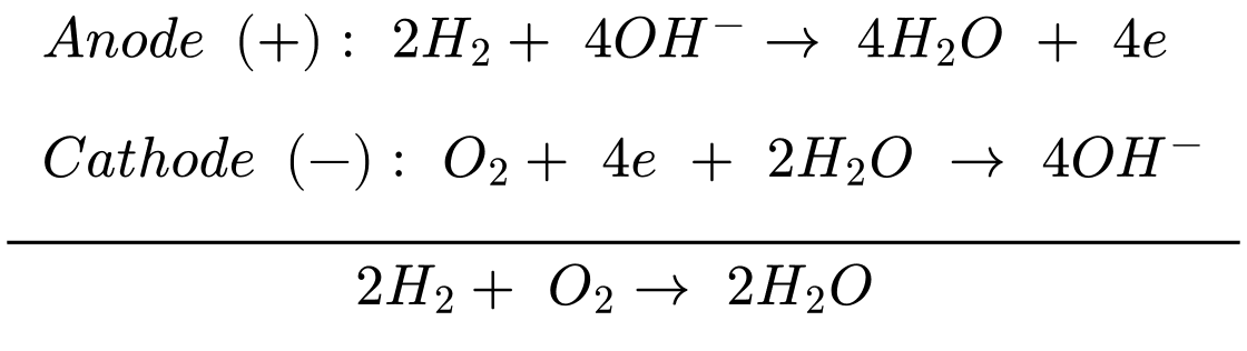4H2O + 4eCathode (–): O2 + 4e + 2H2O