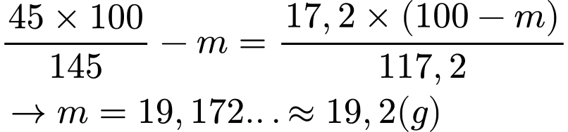 ⟶ Trong (100-m) g dung dịch bão hòa chứa [17,2 × ( 100-m)] ÷ 117,2 g muối Morh.