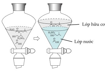 - Mục đích: dùng sự khác nhau về độ tan giữa các chất để tách lớp hữu cơ (chứa ester) ra khỏi lớp nước (chứa acid, alcohol dư, xúc tác H₂SO₄, v.v.). Đáp án: C