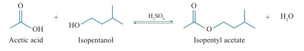 Acetic acid và isopentanol đã được đun nóng với sự có mặt chất xúc tác acid trong một giờ để tạo ra isopentyl acetate, một ester có mùi chuối. Sau phản ứng, bình cũng sẽ chứa sản phẩm, các chất tham gia ban đầu:
