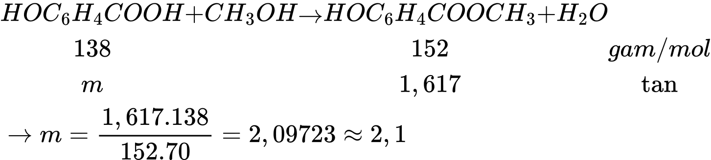 mC8H8O3 = 15,4.106.105 = 1,617.109 (mg) = 1,617 tấn