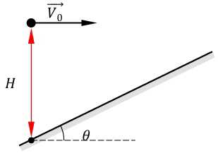 Tầm cao của vật từ vị trí ném đến vị trí tiếp xúc với mặt phẳng nghiêng là:
