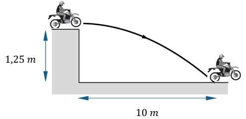 Câu 6 [757775]: Một vận động viên lái xe địa hình lái xe vượt qua một bậc thềm cao 1,25 m so với mặt đất và tiếp đất tại vị trí cách bậc thềm một đoạn 10 m như hình vẽ.