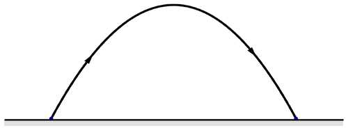 Thời gian bóng chạm đất phụ thuộc vào vận tốc theo phương thẳng đứng. Thời gian cần thiết để chạm tới mặt đất t.