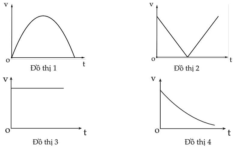 Cho các đồ thị tốc độ – thời gian của vật như hình vẽ bên dưới.Đồ thị đúng là?