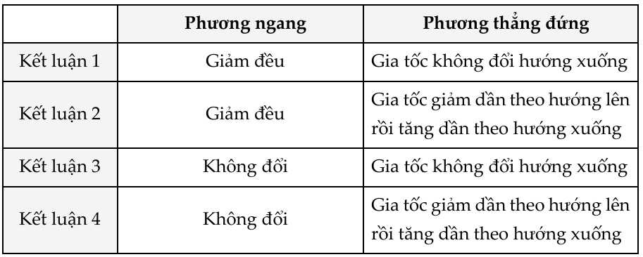 Cho các kết luận về thành phần vận tốc theo phương ngang và theo phương thẳng đứng của vật.