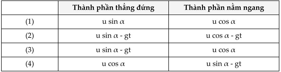 Thành phần vận tốc theo phương ngang là: