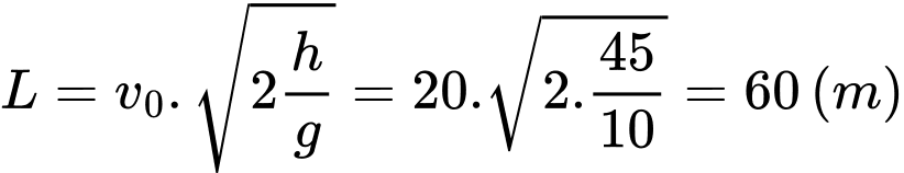 Vì vật ném ngang, tầm xa của vật xác định bằng công thức: