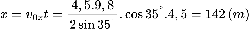 Khoảng cách di chuyển theo phương ngang được tính theo công thức: