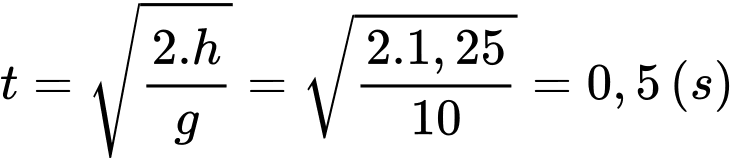 Thời gian vật rơi là: