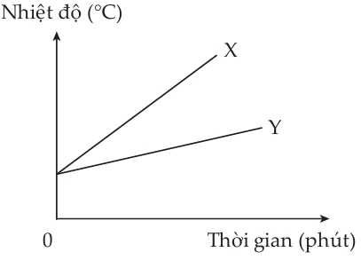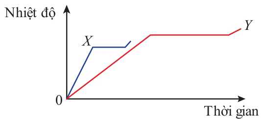 Hai chất rắn X và Y có khối lượng bằng nhau được đun nóng riêng rẽ bằng hai bếp điện giống hệt nhau. Hình vẽ bên biểu diễn sự thay đổi nhiệt độ của hai chất theo thời gian. Phát biểu nào sau đây là đúng?