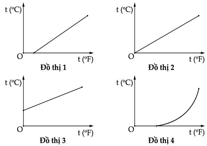 Câu 13 [759288]: Phương trình nào sau đây biểu diễn đúng mối liên hệ giữa nhiệt độ đọc được tương ứng trên các nhiệt kế Celsius và nhiệt kế Fahrenheit