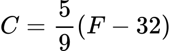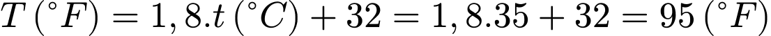 Có: T\left( {}^\circ F \right)=1,8t\left( {}^\circ C \right)+32\Rightarrow t\left( {}^\circ C \right)=\frac{5}{9}\left( T\left( {}^\circ F \right)-32 \right)