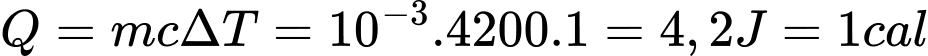 Nhiệt lượng cần cung cấp để 1 g nước tăng lên 1oC là: