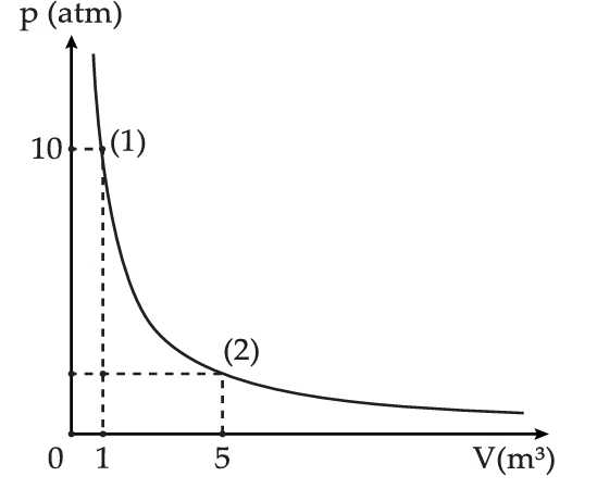 Câu 49 [709757]: Quá trình biến đổi trạng thái của một lượng khí xác định được biểu diễn bằng đồ thị hình vẽ. Áp suất của chất khí tại trạng thái (2) bằng bao nhiêu atm?