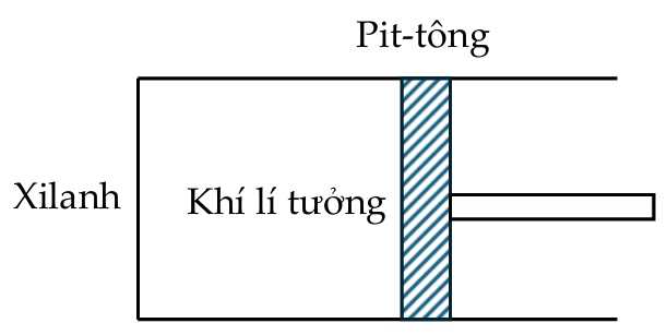 Quá trình dãn nở của khối khí trong xilanh là quá trình đẳng áp. Khi pit-tông dịch chuyển sang phải, thể tích và nhiệt độ của khối khí cùng tăng. Nếu nhiệt độ tuyệt đối của khối khí trong xilanh tăng lên hai lần thì thể tích của nó cũng tăng hai lần.