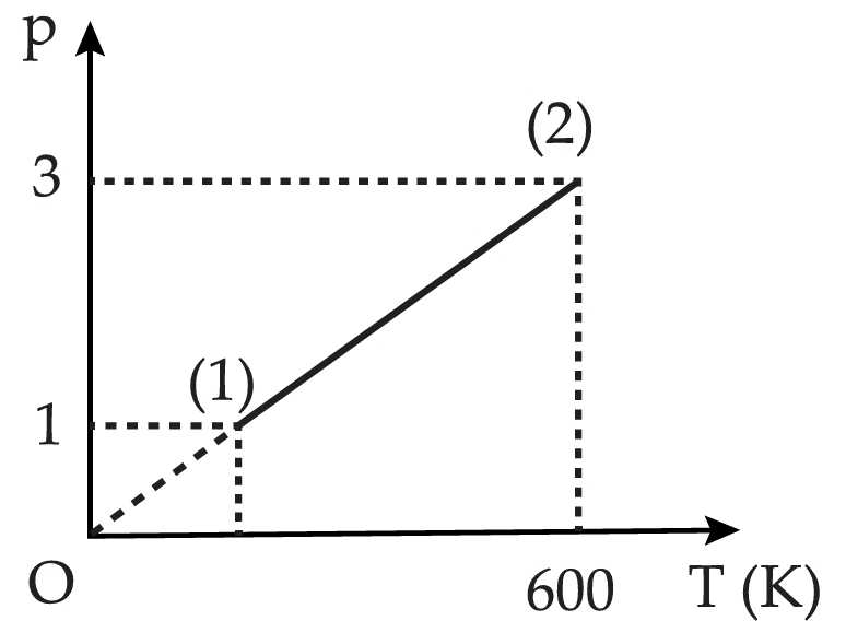 Câu 48 [710118]: Một lượng khí xác định thực hiện quá trình biến đổi trạng thái (1) sang trạng thái (2). Quá trình biến đổi này được biểu diễn bằng đồ thị hình vẽ. Nhiệt độ của chất khí ở trạng thái (1) bằng