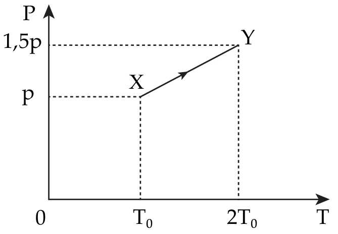 Câu 46 [709699]: Trong sơ đồ, đường đứt nét X biểu thị sự thay đổi của áp suất, p, theo nhiệt độ tuyệt đối, T, đối với 1 mol khí lý tưởng trong một bình chứa có thể tích cố định. Đường nào, A, B, C hay D biểu diễn sự biến thiên của 2 mol khí trong cùng một bình chứa?