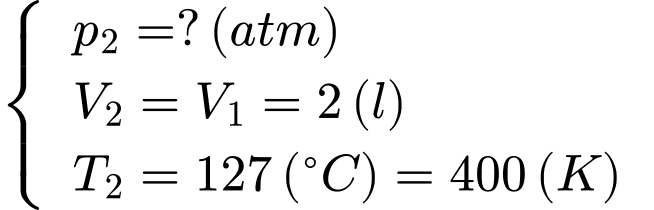 Quá trình biến đổi là quá trình đẳng tích nên ta có: