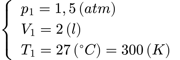 Nhiệt độ của chất khí ở trạng thái (1) bằng