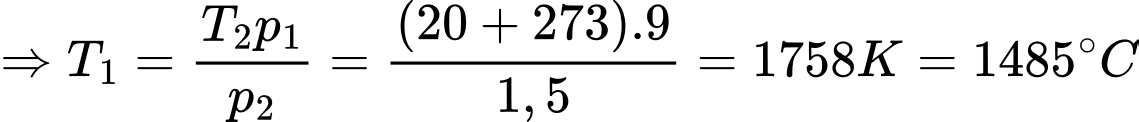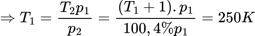 Câu 12 [759305]: Nếu áp suất của chất khí bên trong một bình kín tăng thêm 0,4 % đồng thời nhiệt độ tăng thêm 1 oC. Nhiệt độ của chất khí ở trạng thái đầu là