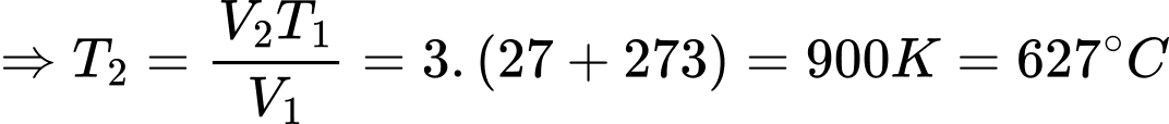 Câu 13 [759306]: Một khối khí lí tưởng có nhiệt độ ở trạng thái ban đầu là 27 oC. Nhiệt độ của khối khí sau khi đun nóng đẳng áp để thể tích của khối khí tăng lên gấp 3 lần là