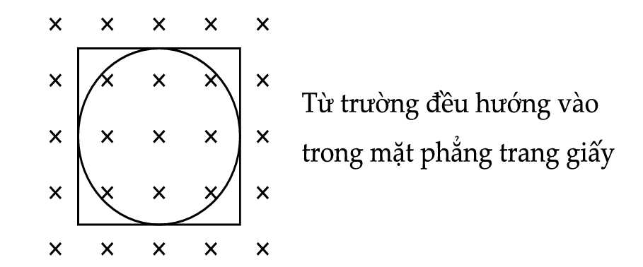 Câu 45 [708795]: Một khung dây dẫn hình chữ nhật có diện tích 200 cm2, ban đầu ở vị trí song song với các đường sức từ của một từ trường đều có độ lướn B = 0,01 T. Khung quay đều trong thời gian