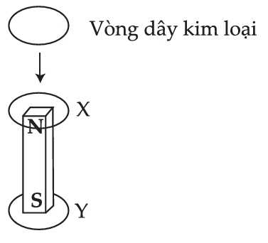 Câu 47 [708848]: Một vòng kim loại được thả ra và rơi thẳng đứng từ phía trên một nam châm như thể hiện trong sơ đồ bên. Sơ đồ nào sau đây mô tả đúng hướng của dòng điện cảm ứng (nếu có) trong vòng tại các vị trí X và Y?