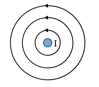 Câu 14 [759792]: Hình vẽ bên dưới mô tả hình ảnh đường sức từ của dòng điện I chạy trong dây dẫn thẳng, dài theo hướng vuông góc với mặt phẳng hình vẽ.