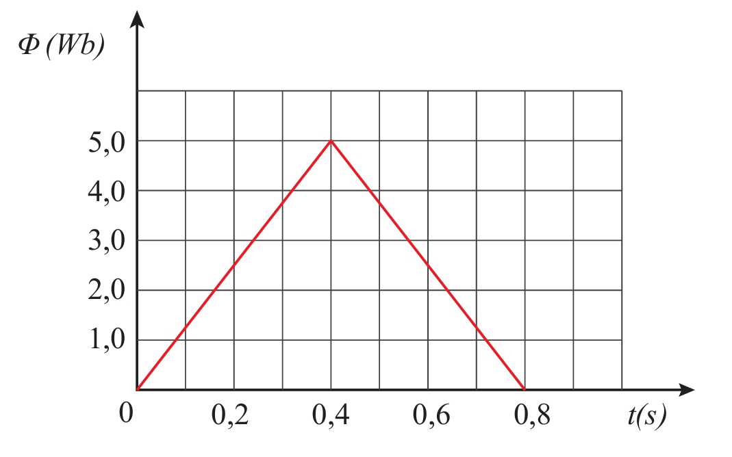 Câu 48 [760110]: Từ thông gửi qua mặt giới hạn của một khung dây biến thiên theothời gian được biểu diễn bởi đồ thị trong hình vẽ bên. Độ lớn suất điện động trung bình xuất hiện trong khung dây trong khoảng thời gian từ 0 đến 0,8 s là