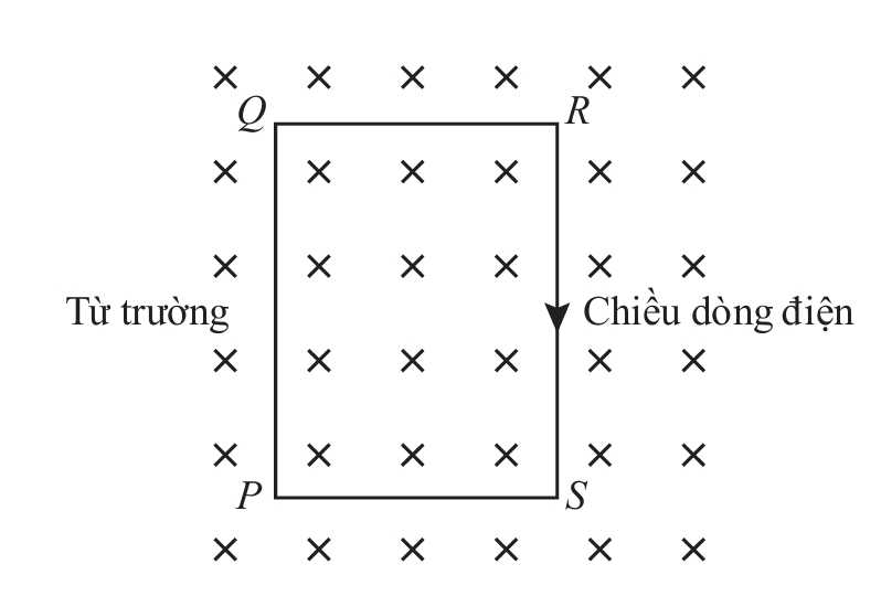Câu 50 [710356]: Cuộn dây hình chữ nhật PQRS mang dòng điện chạy theo chiều kim đồng hồ. Cuộn dây được đặt bên trong một từ trường đều hướng vào tờ giấy như hình bên dưới.