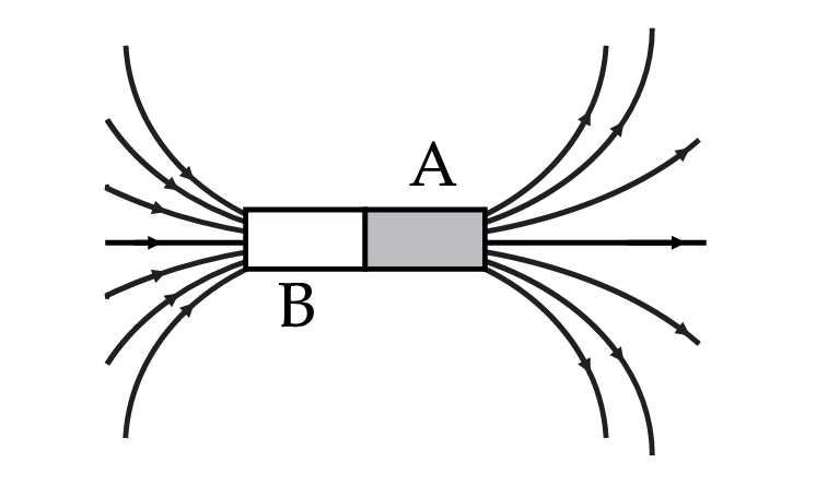 Câu 13 [759791]: Hình vẽ bên dưới mô tả hình ảnh đường sức từ của một nam châm với hai cực từ A và B.