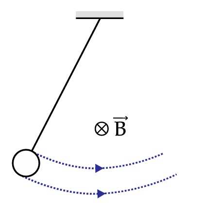 Một thanh đồng PQ được treo ở trạng thái nghỉ bằng các sợi cách điện trong một từ trường đều hướng vào tờ giấy như thể hiện trong Hình bên. Các đầu còn lại của các sợi được nối với một lò xo cân cố định trên trần nhà. Hai