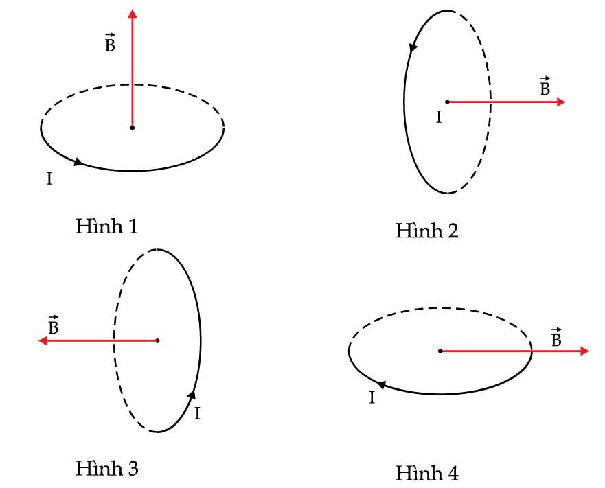 Câu 9 [759781]: Hình vẽ nào sau đây biểu diễn sai phương, chiều của vector cảm ứng từ gây bởi dòng điện I chạy trong dây dẫn hình tròn