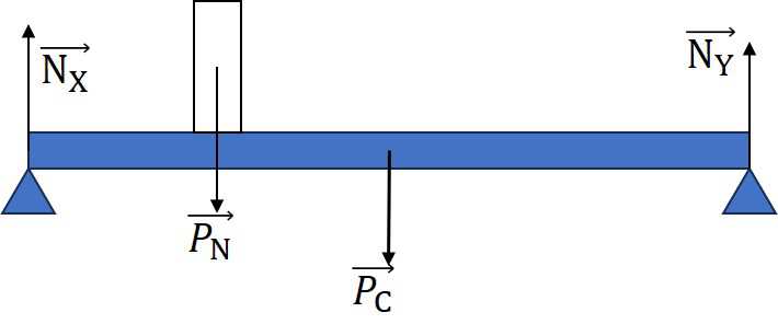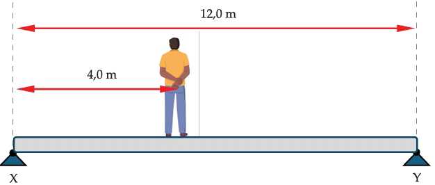 Một người đàn ông, trọng lượng 600 N đứng ở khoảng cách 4 m so với bệ X. Phản lực do bệ X tác dụng lên cầu có độ lớn bằng