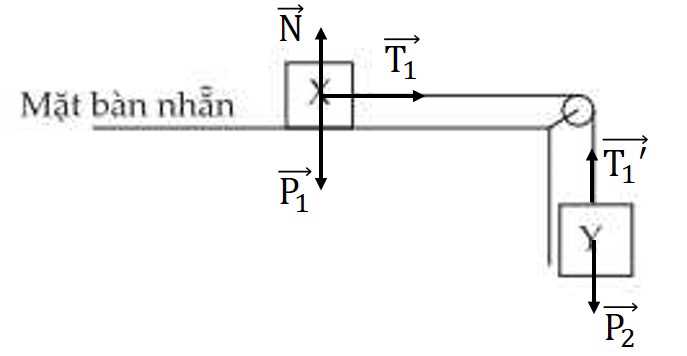 Khi dây đứt, vật Y rơi dưới tác dụng của trọng lực nên chuyển động nhanh dần đều với gia tốc 10 m/s2 còn vật X ban đầu chịu lực kéo F với gia tốc a, sau khi dây đứt, lực F mất đi, vật X sẽ tiếp tục chuyển động với vận tốc không đổi như vật tốc tại thời điểm dây đứt do hợp lực tác dụng lên nó lúc này bằng 0.