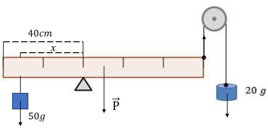 Để thước cân bằng thì phải treo trên thước một vật khối lượng 50 g tại điểm cách thước một khoảng