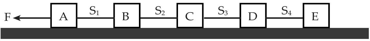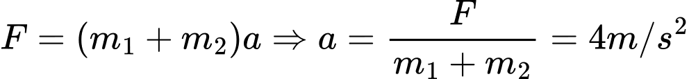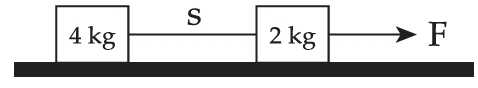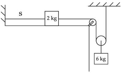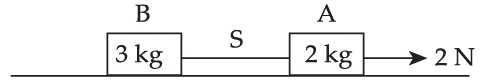 Hai vật được nối với nhau bằng một sợi dây nhẹ S đặt trên một mặt phẳng ngang nhẵn. Chúng chuyển động với gia tốc đều 2 m/s2 dưới tác dụng của lực F. Gia tốc của các vật sẽ là bao nhiêu nếu S đột nhiên bị đứt?