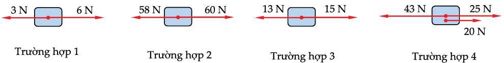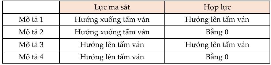 Cho các mô tả về lực tác dụng lên khối gỗ khi chuyển động với tốc độ không đổi.
