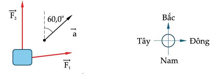 so với hướng bắc chếch về phía Đông Bắc. Biết lực F2 tác dụng lên vật hướng về phía Bắc với độ lớn 5 N.