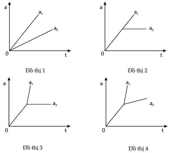 Đồ thị biểu diễn đúng sự thay đổi của a1 và a2 theo thời gian là